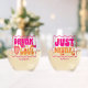 Retro Drunk in Love Bachelorette Weekend Stemless Wine Glass
