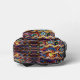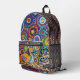 retro painting of circles and waves with a cute bird swimming in this retro hippie painting.
