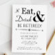 It's going to be a heck of a retirement party so set the stage with this funky retro black and white Eat, Drink & Retire! invitation.