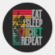 Retro Eat Sleep Cricket Repeat Classic Round Sticker