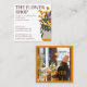 A chic retro potted floral plant with a modern twist illustration with plum, orange, yellow and gray, all the color ar editable so you can make you own color palette. perfect business card for a florist and event planner, add your photo at the back and social medias.