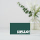 Make your business simply fun and cleanly elegant . A minimalist neutral emerald green retro groovy hello unique business card template . As you see it features warm plane dark green background. And white elegant bold groovy font of hello in the front . And in the back you have the full name and title .And social media icons and custom QR code with other info. You can simply customise it by clicking in the blue Personalise button and then change the info. What you waiting for!! Go a head and grab it . we guarantee you the amazing quality and fast shipping.