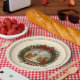 This retro style holiday party paper plate features a wreath decorated with a gold-yellow bow, green holly leaves, red berries, and two adorable squirrels. Its classy yet rustic design beautifully captures the essence of the December holiday season and appeals to those who appreciate artistic illustrations. The plate offers customisation options, allowing you to personalise it with your company name, family name, or individual names. Additionally, you can include a seasonal greeting, making it a thoughtful choice for spreading holiday cheer.