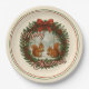 Retro English Holiday Wreath With Cute Squirrels Paper Plate