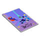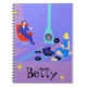 This customisable Retro Evening at Home Notebook looks like a scene out of a 1960's romantic comedy. The minimalist design features an attractive cartoon couple in the living room of a mid century modern house. The room prominently features a purple and blue stone wall and a matching purple and blue striped rug. Against the wall, there is a turquoise, cone shaped fireplace with a roaring fire. In the corner, the suave man of the house is lounging in a red egg chair. He is wearing a blue suit with a blue tie. In one hand, he is holding a martini glass. No wonder he's so relaxed! Hanging from the ceiling, there is a yellow, Sputnik light fixture. A woman with an hourglass figure is sitting on the rug. She is wearing a vibrant, blue dress and not a hair is out of place in her flippy blonde "do". Beside her, on the floor, there is a blue and black portable record player. Several vinyl record albums are scattered near the beautiful deejay. Go ahead and sing along. You know you want to! Below the design, there is plenty of room for personalising with the name of the recipient.