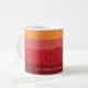 This awesome fall-toned coffee mug features four colour blocks across the background with the text "coffee" in the foreground. The colours represent autumn with golden yellow, melon, burnt orange, and chocolate brown. The word "coffee" is offset with multiple colours as well.
