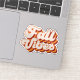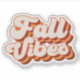 This retro-inspired fall design prominently features the phrase "Fall Vibes" in a bold, 3D-style font that immediately grabs attention. The text is layered with warm autumn colours, including rich oranges, deep reds, and soft creams, creating a sense of depth and dimension that makes the words pop off the background. The vintage-style typography with its soft, rounded edges gives the design a nostalgic feel, reminiscent of classic 1970s aesthetics. The playful shadows and colour contrasts add to the design's dynamic, eye-catching appeal.