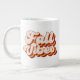 This retro-inspired fall design prominently features the phrase "Fall Vibes" in a bold, 3D-style font that immediately grabs attention. The text is layered with warm autumn colours, including rich oranges, deep reds, and soft creams, creating a sense of depth and dimension that makes the words pop off the background. The vintage-style typography with its soft, rounded edges gives the design a nostalgic feel, reminiscent of classic 1970s aesthetics. The playful shadows and colour contrasts add to the design's dynamic, eye-catching appeal.