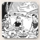 A black and white retro image of a family having a picnic outdoors and eating food. Image from a 1940’s Vintage Printers Book (with no copyright).