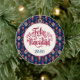 This fabulous Christmas folk art blue round ceramic ornament with a pattern of angels, nutcrackers, stars and presents that says Merry Christmas in Spanish "Feliz Navidad" and has the year would look awesome on your Christmas tree. It's so festive and will go with any Christmas decor - it's rustic yet retro and modern yet traditional! Get some as gifts for loved ones...they'll love it!