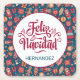 Retro Feliz Navidad Personalised Square Paper Coaster