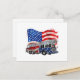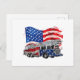 Retro Fire Truck Firefighter Fireman USA Flag 4th Holiday Postcard