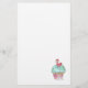 Colourful watercolor painting of a cupcake with aqua icing and a cute pink flamingo perched on top! Whimsical and fun painting by AEC. Copyright Amanda Calhoun, all rights reserved.