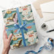 Wrapping Paper - Vintage-inspired poolside scene with pink flamingos, lounge chairs, cocktails, and sunny vibes in a retro summer aesthetic. Ideal for beach lovers, vacation fans, and those who enjoy fun, nostalgic designs.