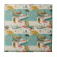 Ceramic Tile - Vintage-inspired poolside scene with pink flamingos, lounge chairs, cocktails, and sunny vibes in a retro summer aesthetic. Ideal for beach lovers, vacation fans, and those who enjoy fun, nostalgic designs.