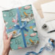 Wrapping Paper - Vintage-inspired poolside scene with pink flamingos, lounge chairs, cocktails, and sunny vibes in a retro summer aesthetic. Ideal for beach lovers, vacation fans, and those who enjoy fun, nostalgic designs.