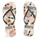 A fun pattern of palm trees, flamingos, retro sunglasses and stripes, these flip flops are fun for summer. Choose for women, men, kids.