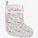 Retro Flamingos On Mint Stripes | Add Your Name Small Christmas Stocking