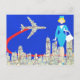 When you see this Retro Flight Attendant Postcard it will be love at first flight! The design features a royal blue background with a city skyline and aeroplane made from a vintage roadmap. There is also a minimalist cartoon drawing of a 1960's flight attendant, complete with an aqua uniform and pillbox hat. This is a perfect greeting for flight attendants, frequent flyers and anyone who loves vintage glamour.