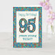 A pretty Age-specific Birthday Card for a Ninety-five-year-old, with the number 95 and the border filled with a colourful retro floral pattern on a teal background. The floral pattern is part of the Posh & Painterly 'Granny Print' collection, from a hand-painted paper collage by Judy Adamson. This design will fit all Greeting Card sizes.