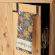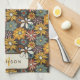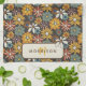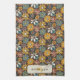 Retro Floral Brown Gold Teal Personalised Tea Towel