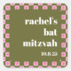 Retro Floral Chequerboard Pink Green Bat Mitzvah Square Sticker