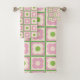 Retro Floral Chequered Pattern Pink and Green Bath Towel Set