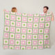Retro Floral Chequered Pattern Pink and Green Fleece Blanket