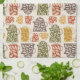 A retro, mid-century modern style pattern of floral coffee pots and mug silhouette shapes. Inspired by vintage Scandinavian design. Colours include olive, terracotta, gold and brown. Original, hand-drawn art by Carey Copeland.