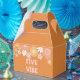 Retro inspired five is a vibe 5th birthday favour boxes with 70's style flowers and boho fonts and colours.