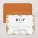 Boho Chic Retro Floral Frame, wedding RSVP cards with meal choice option. Back of card shown in orange can be customised.