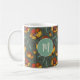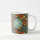Retro Floral Green Gold Orange Monogram Coffee Mug