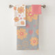 Retro Floral Pattern and Plain Pink Towel Sets. Cute retro soft grey and white colours floral pattern mix and match with sweet plain pink. Pretty, simple, and sweet flower pattern.  Perfect gift for who are lovely, girly and feminine!