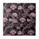 Retro Floral Pattern Pink on Black Tile