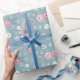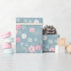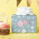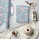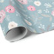 Retro floral pattern. Pink and white flowers on a muted grayish-blue background.
