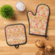 Retro Floral Personalised Monogram Oven Mitt & Pot Holder Set