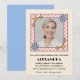 Retro Floral Photo 86th birthday invitation Groovy Blue Flowers