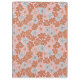 Playful seamless retro floral pattern featuring bold flowers in shades of orange, peach, and blue on a light pink background, perfect for vintage-inspired designs.