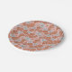 Playful seamless retro floral pattern featuring bold flowers in shades of orange, peach, and blue on a light pink background, perfect for vintage-inspired designs.