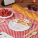 Retro floral Seven is a Vibe 7th birthday plates with 70's style flowers and boho fonts and colours.