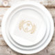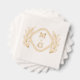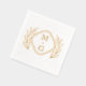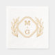 Retro floral design of Foil Stamped Napkins with monograms. Wedding napkin with two monograms and wreath.