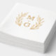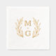Retro floral design of Foil Stamped Napkins with monograms. Wedding napkin with two monograms and wreath.