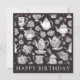 Send this stylish card to a tea lover on their birthday. With a charming retro pattern of teapots and flowers in black and white, the elegant card displays vintage-inspired charm and flair. 'Happy Birthday' is on the front in capital letters, while the card is plain white on the reverse for your own message.