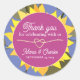 Modern - retro, boho, elegant, colourful floral, yellow, pink and blue wedding thank you sticker for favours with faux gold rope heart, sunflower and trendy script.