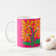 BOHO VIBES ONLY! A colourful mug with retro design: Yellow flower on pink background. Bring good vibes into your life with this beautiful mug!