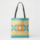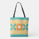 Retro Flower, Geo Pattern Orange, Teal, Pink Tote Bag
