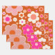 Retro Flower Pattern In Orange Peach Pink Floral Wrapping Paper Sheet