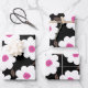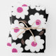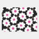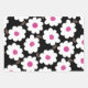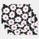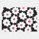 Retro Flower Pattern in White on Black Wrapping Paper Sheet