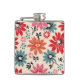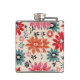 Retro Flower Pattern Red Orange Blue Hip Flask