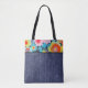 Retro flowers and denim tote bag